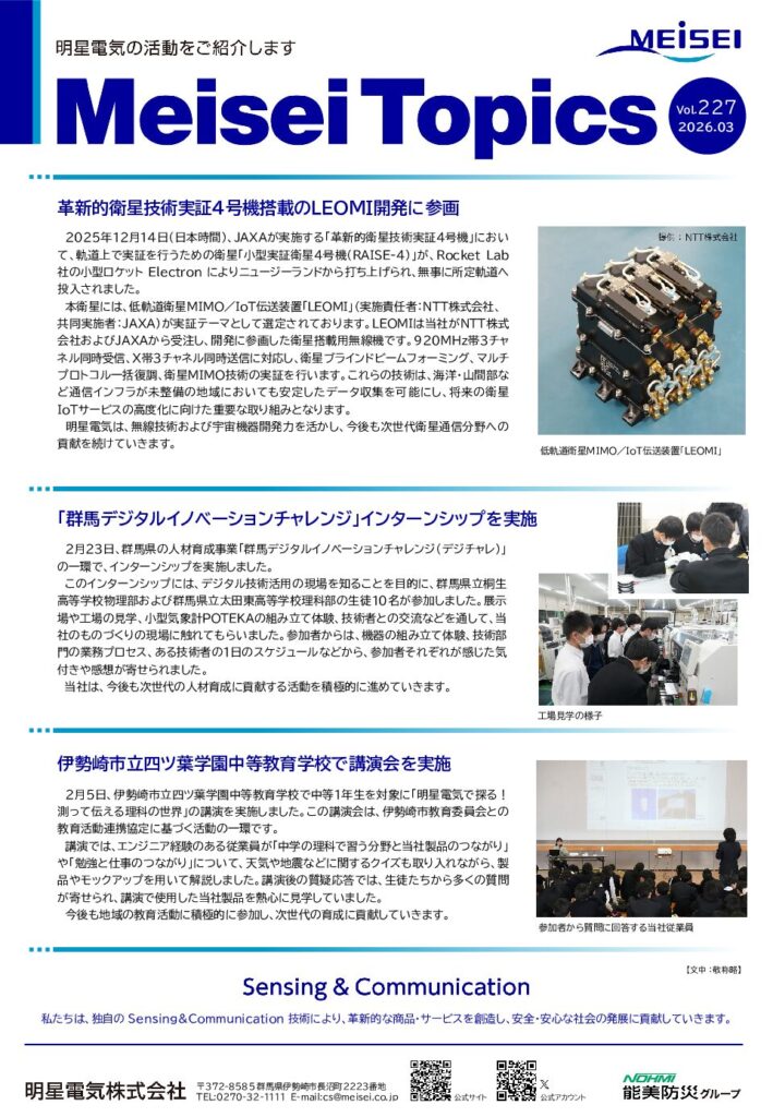導入事例や新着情報など 明星電気の活動のレポートをお届けいたします。